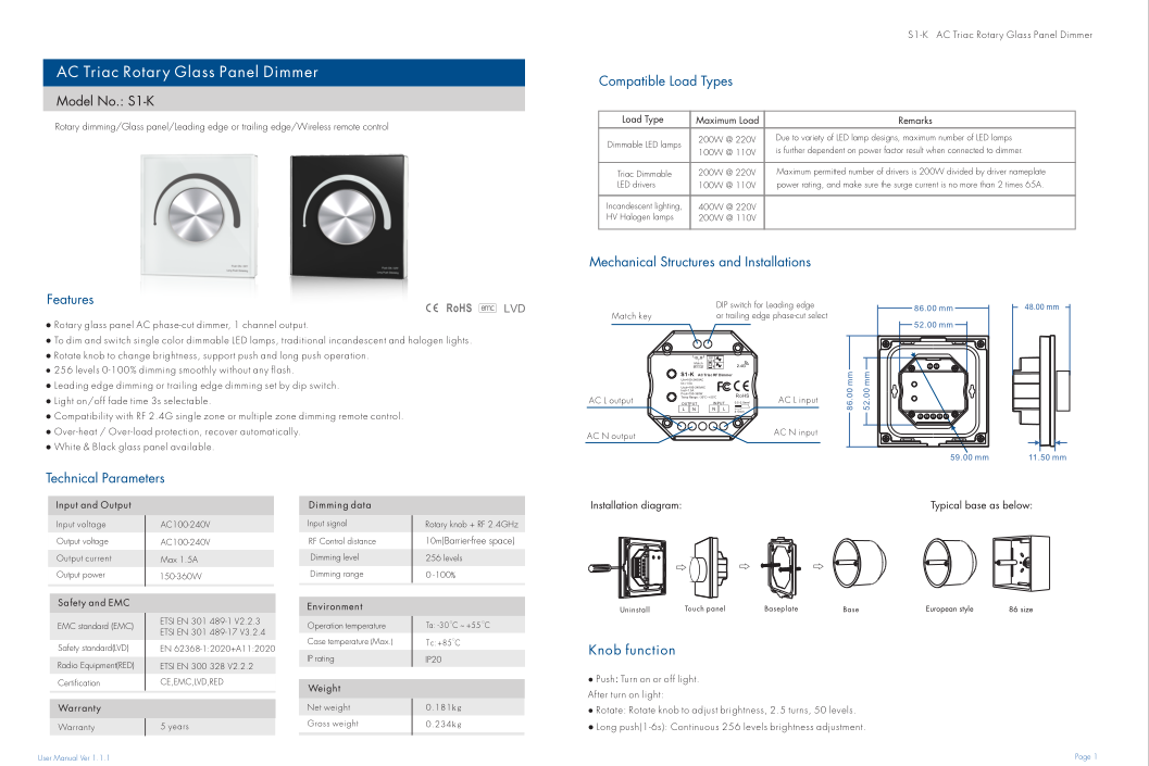 | Item No. 2602 LED Dimmer | Input Voltage: | |