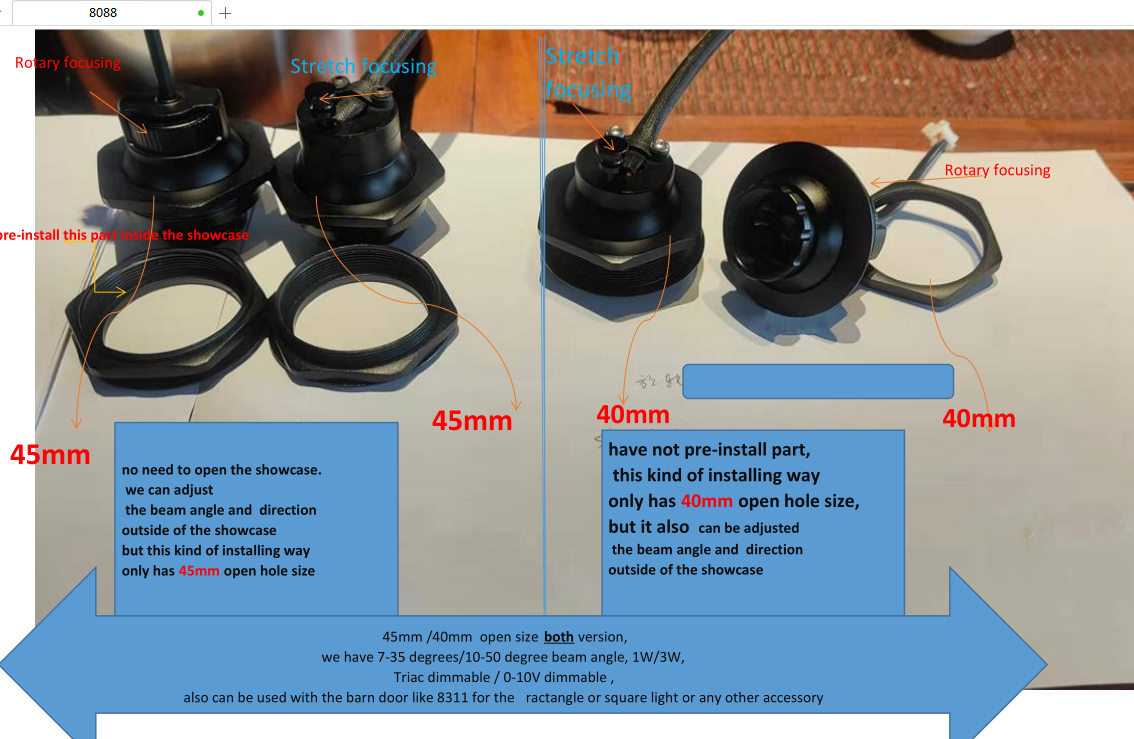 A considerate design more oriented from the spirit of sustainability and flexibility. A cabinet/showcase light can be controlled and maintained without opening the box! Plus a light effect processing optical system to achieve an optimum illuminating effect. Control and maintain w/o opening the cabinet. That provides convenience for a more precise and perfect display. Equipped with set of pre-mounted brackets, the light can be changed and maintained easily. With an adjusting needle, the beam angle and the projecting direction can be adjusted freely.